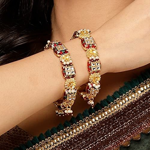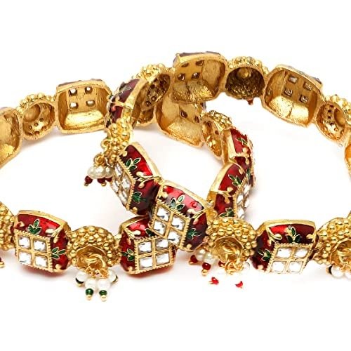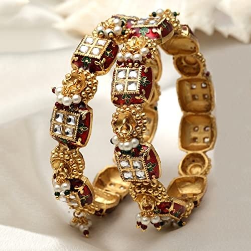 7 reviews for Karatcart Set of 2 Gold Plated Red Meena and Pearl Studded Bangles for Women – Fast Shipping to USA & Canada