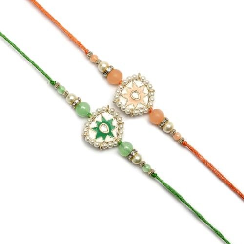 7 reviews for Karatcart Set of 4 Handmade Meenakari Heart Shape Kundan Rakhis for Brother with Roli & Chawal – Fast Shipping to USA & Canada