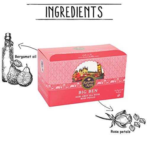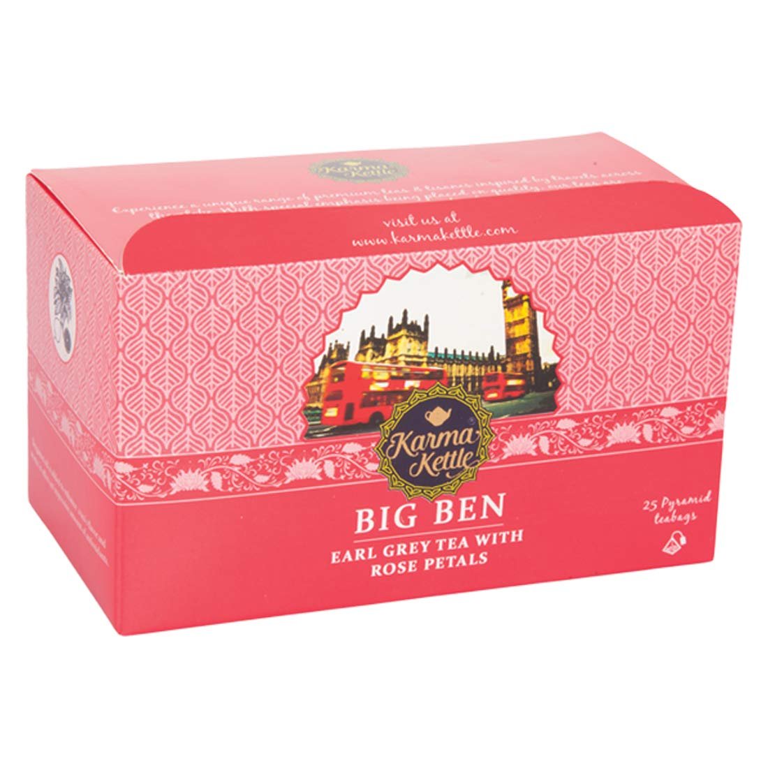 Karma Kettle Big Ben Earl Grey Assam Tea with Bergamot Oil & Rose Petals (25 Nos Pyramid Teabag Box), 50 g – Fast Shipping to USA & Canada