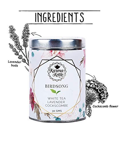 10 reviews for Karma Kettle Birdsong Silver Tips White Tea with Lavender Flowers, Cockscombs Flowers (30 g Loose Leaf Tin), 30 g – Fast Shipping to USA & Canada