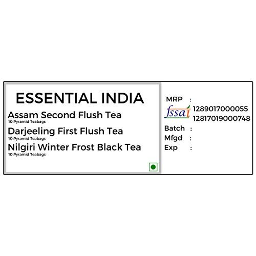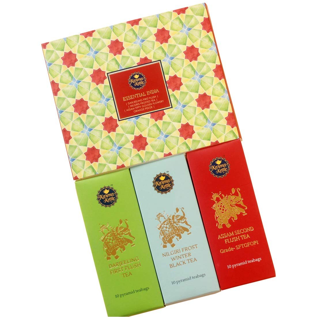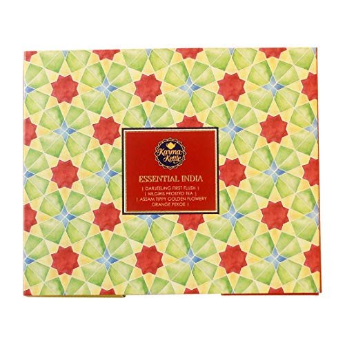 Karma Kettle Essential India Gift Box with Assam Second Flush Tea, Darjeeling First Flush Tea, Nilgiri Winter Frost Black Tea – 30 Pyramid Teabag, 60 g – Fast Shipping to USA & Canada