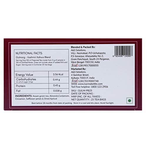 - If you are a fitness enthusiast or committed to maintaining a healthy lifestyle, our Kashmiri Kahwa Tea is perfect for you. It features loose leaf green tea, almonds, saffron, apricots, cardamom, and a blend of other spices, creating a delightful sensory experience. With zero calories, this green tea, when enjoyed without milk or sugar, not only offers a delicious flavor but also contains virtually no calories.