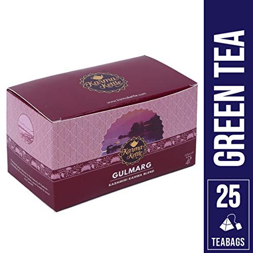 Karma Kettle Gulmarg Kashmiri Kahwa Green Loose Aromatherapy Natural Detox Tea Leaf with Almonds, Saffron, Apricots, Spices 25 Pyramid Teabags – Fast Shipping to USA & Canada