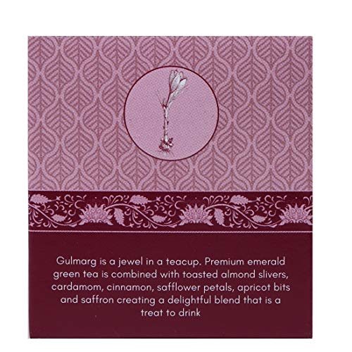 GULMARG – Genuine Kashmiri Kahwa Gulmarg is a treasure in a teacup. Exquisite emerald green tea is infused with slivers of toasted almonds, cardamom, cinnamon, safflower petals, bits of apricot, and saffron, resulting in a delightful concoction that is a pleasure to savor.