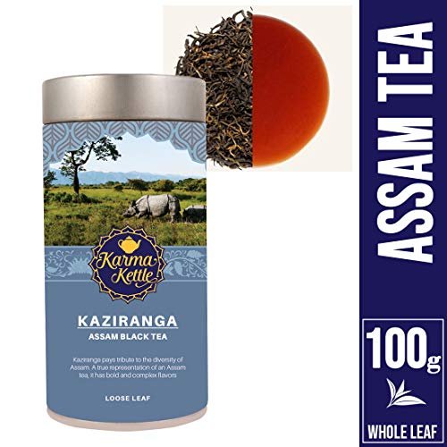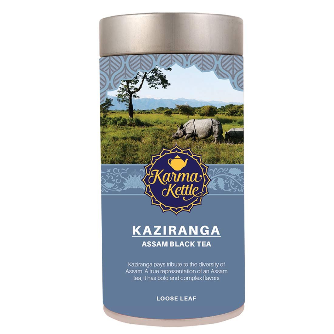 Karma Kettle Kaziranga Antioxidants Assam Black Tea – Loose Leaf Tin, 100 gm – Fast Shipping to USA & Canada