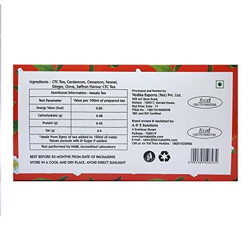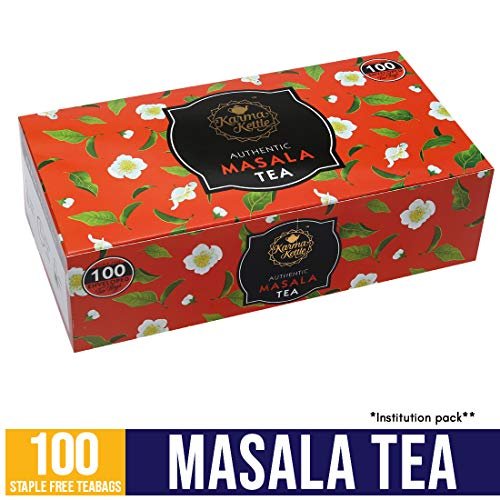 Karma Kettle Masala Tea Unbleached and Staple-Free Teabags with Natural Flavourings (100 Double Chambered Teabags), 200 g – Fast Shipping to USA & Canada