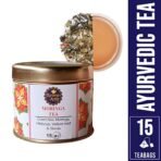 - Contains 15 pyramid teabags in a decorative tin.