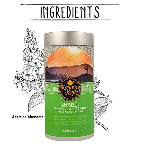 Shanti Sencha green tea infused with jasmine buds offers a fragrant and flavorful experience, merging the benefits of green tea with carefully selected jasmine blossoms to create an exotic yet harmonious blend. Sencha green tea is renowned for its numerous health advantages, including boosting metabolism and supporting weight loss. Jasmine, with its distinctive floral scent, is frequently utilized in aromatherapy.