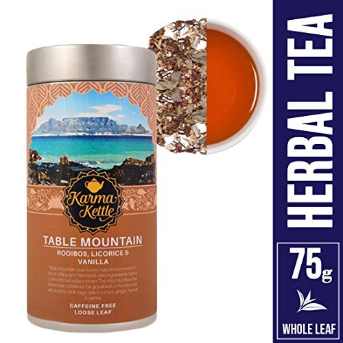 Table Mountain stands as a renowned natural landmark in South Africa, and this tea blend features ingredients indigenous to the African subcontinent. The outcome is a delightful fusion that marries the health benefits of rooibos tea with licorice root, sage, black currant, ginger, fennel, and vanilla.
