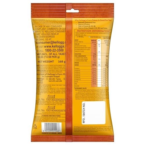 Kellogg’s Corn Flakes Real Almond Honey | Breakfast Cereals | High in Vitamin B1, B2, B3, B6 & C| High in Iron | Naturally Cholesterol Free | 168gm/170gm/180gm (weight may vary) – Fast Shipping to USA & Canada