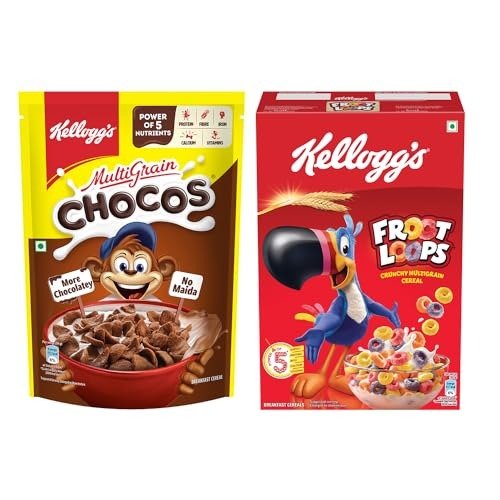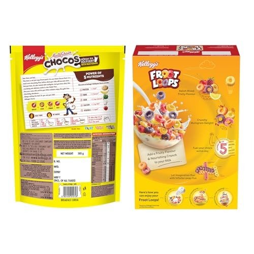 - FRUITILICIOUS MILK, CRUNCHY CHOCOLATEY MORNINGS: Elevate your mornings with a breakfast cereal adored worldwide. Enjoy Kellogg?s Froot Loops and Kellogg’s Chocos!