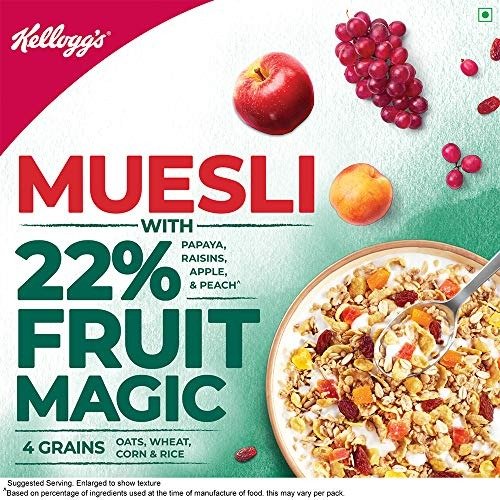 - Kellogg’s Muesli Fruit Magic offers a luxurious blend of carefully chosen ingredients to satisfy your refined taste.