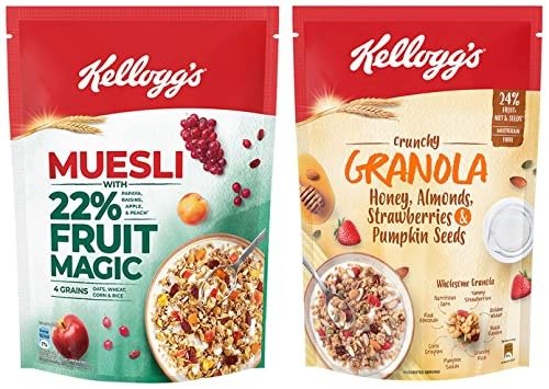 Kellogg’s Muesli, featuring the wholesome benefits of five baked grains along with a generous mix of dried fruits and nuts, is meticulously designed for both flavor and texture. Welcome a delightful breakfast brimming with multigrain goodness that will energize your mornings and prepare you for the day ahead. Its charm lies in its straightforwardness?simply grab a handful of Kellogg’s Muesli and savor the natural bounty of its grainy, nutty, and fruity essence!