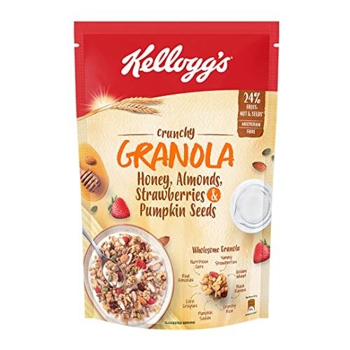Kellogg’s Crunchy Granola with Honey, Almonds, Strawberries & Pumpkin Seeds | Breakfast Cereals | Multigrain Flakes | 450g