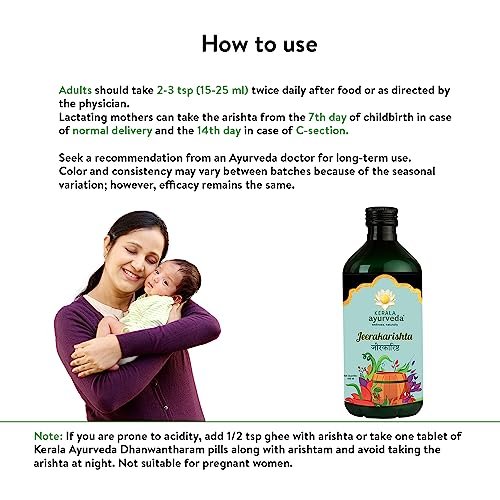 - Jeerakaristham serves as a postnatal Ayurvedic tonic aimed at bolstering the mother’s strength and immunity. Composed entirely of natural ingredients, it aids in increasing breast milk production, detoxifying the body, and stimulating the mother’s appetite following childbirth.