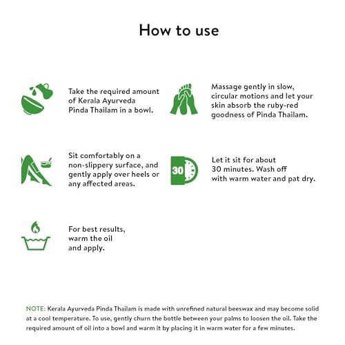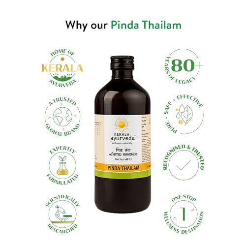 - Ayurvedic oil for gout relief – Kerala Ayurveda Pinda Thailam is enriched with Anantamul and Sarja, which effectively alleviates pain and soothes gout flare-ups.