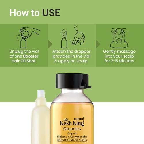 Prepare to discover unparalleled hydration and hair fall prevention with Kesh King Organics. Introducing our Organic Hibiscus and Ashwagandha Booster Hair Oil Shots. These Express Therapy Booster Oil Shots deliver an extraordinary impact, featuring a formula that is up to twice as effective, infused with 100% natural ingredients. Designed specifically to provide you with a week?s worth of daily oiling benefits in a single, potent shot. Bid farewell to concerns about hair fall and welcome beautiful, vibrant tresses. Imagine this: diminished hair loss, enhanced hair growth, and roots that are stronger and more resilient than ever. Our cutting-edge formula tirelessly nourishes and hydrates your hair, ensuring it remains long, robust, and voluminous. Get ready to turn heads with your stunning hair! And there’s even more! Our formulation is meticulously crafted without any harmful chemicals.