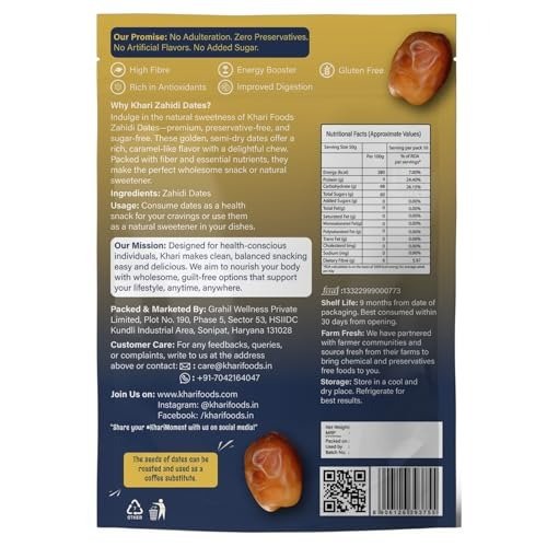 - Khari Dried Zahidi Dates are completely natural and freshly harvested, carefully selected from the highest quality farms.