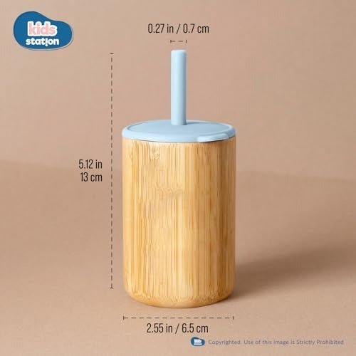 Kids Station 1 Piece Bamboo Infants Feeding Set – Sipper with Straw and Cap – Non-Toxic – BPA-Free and Unbreakable Eco-Friendly – Baby-Led Weaning Supplies for Toddler Self-Feeding – (Green) – Fast Shipping to USA & Canada