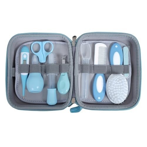 Kids Station 11 in 1 Grooming Kit for New Born Baby – Baby Comb, Baby Hair Brush, Toothbrush, Dropper, Thermometer, Nail Filer, Scissor, Ear Pick, Nasal Aspirator, Feeding Tube, and Nail Cutter – Kids Accessories Set for Infants – Ideal for Travelling & Home Use – (Blue) – Fast Shipping to USA & Canada