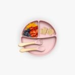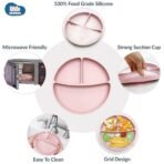 Kids Station 3 Piece BPA-Free Silicone Baby Feeding Set – Baby Plate – Spoon and Bowl – Make Mealtime Fun – Microwave Safe – Unbreakable Eco-Friendly – Organic & Natural (Plate (Set of 3), Light Pink) – Fast Shipping to USA & Canada