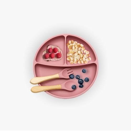 Kids Station 3 Piece BPA-Free Silicone Baby Feeding Set – Baby Plate – Spoon and Bowl – Make Mealtime Fun – Microwave Safe – Unbreakable Eco-Friendly – Organic & Natural (Plate (Set of 3), Pink) – Fast Shipping to USA & Canada