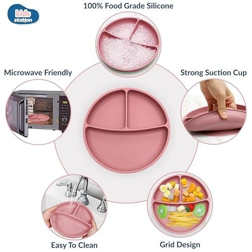 - SIMPLE TO MAINTAIN: Crafted from premium, non-stick, food-grade silicone, the Kids Station Silicone Feeding Set for toddlers resists stains and odors. This set is safe for use in the microwave, dishwasher, oven, and freezer, making it ideal for both babies and young children.