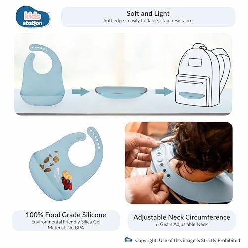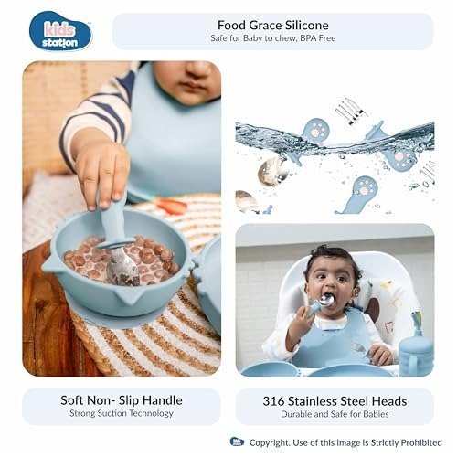 - SAFE & PREMIUM MATERIAL: Made of 100% food-grade silicone, the Kids Station Feeding Set for baby is non-toxic, BPA Free, phthalate free, lead free, paint free and free from all other harmful chemicals. This makes it an ideal choice for your babies, infants or toddlers, providing peace of mind to parents for their children.