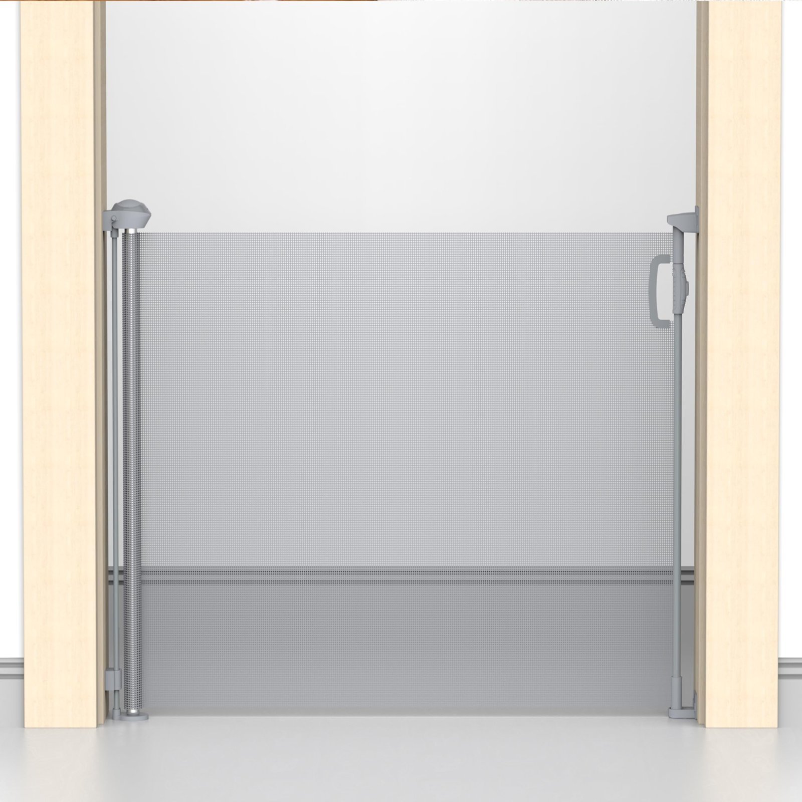 - 4) Sturdy and Safe Design with Locking Mechanism Crafted from robust yet gentle mesh, this gate helps protect children from injury if they accidentally run into it. The childproof lock offers extra security, giving parents peace of mind. All components are odorless and made from non-toxic materials.