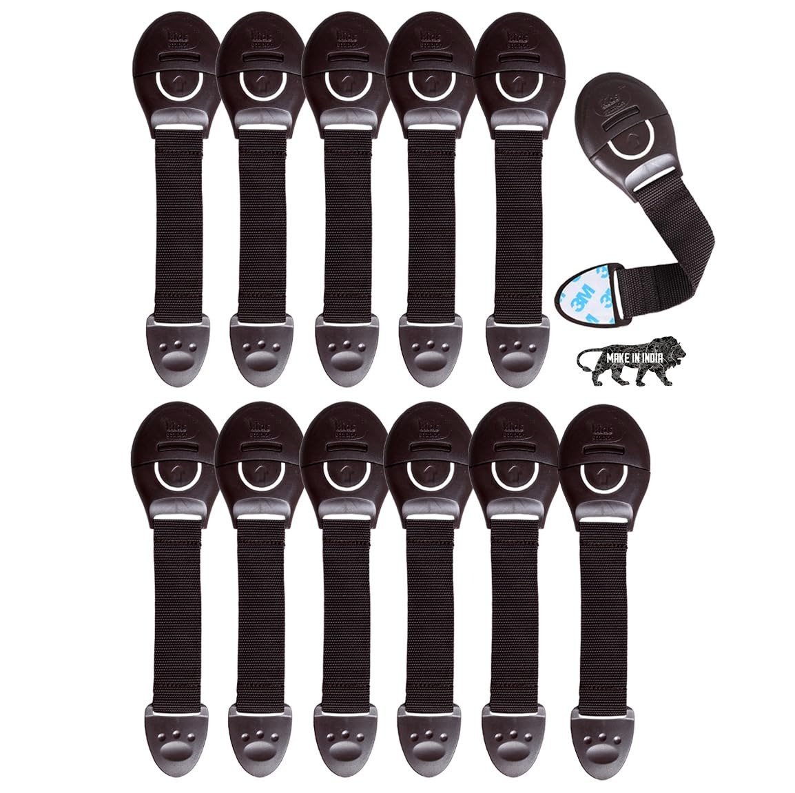 Kids Station Baby Safety Furniture Locks – Strong and Adhesive Child / Toddler / Infants Safety Locks for Drawers, Cabinets, Fridge and Cupboard – Baby Proofing Product – Made In India – Pack of 12 (Brown) – Fast Shipping to USA & Canada