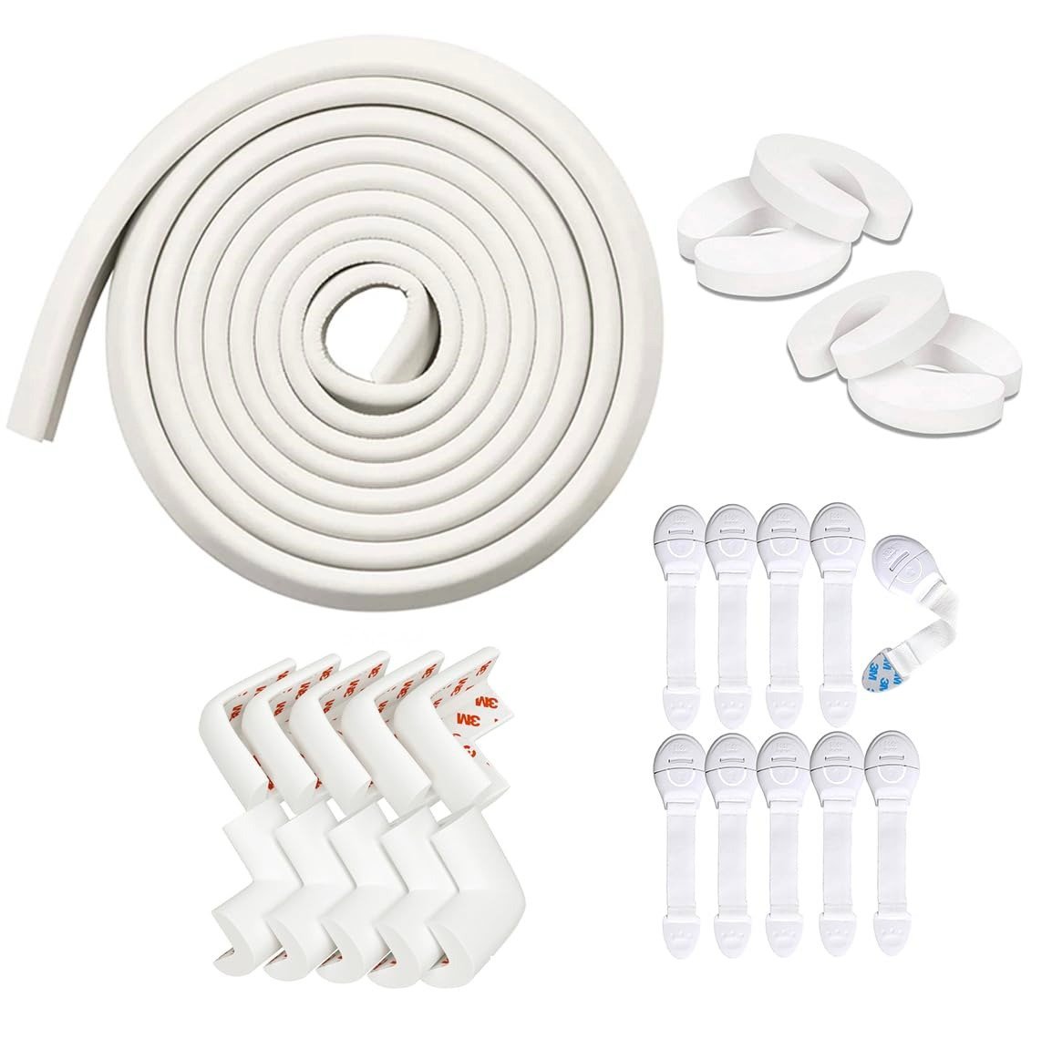 Kids Station Baby Safety Kit- 5 Meter Safety Strip + 8 Corner Guards + 4 Door Stoppers + 10 Child Safety Locks for Drawers, All-in-one Baby Proofing Kit (5 Meter Edge Protector Kit (White + White)) – Fast Shipping to USA & Canada