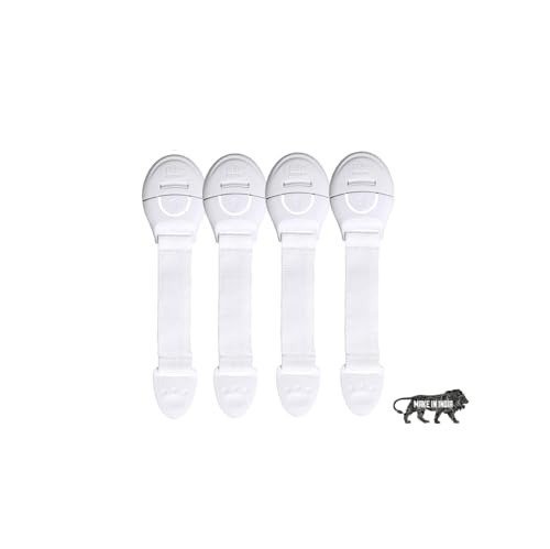 Kids Station Baby Safety Nylon Drawer Locks-Strong And Adhesive Child / Toddler / Infants Safety Locks For Drawers,Cabinets,Fridge And Cupboard-Baby Proofing Product – Made In India-Pack of 4 (White) – Fast Shipping to USA & Canada