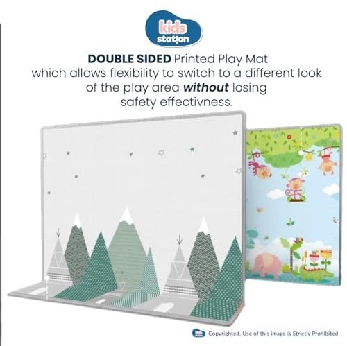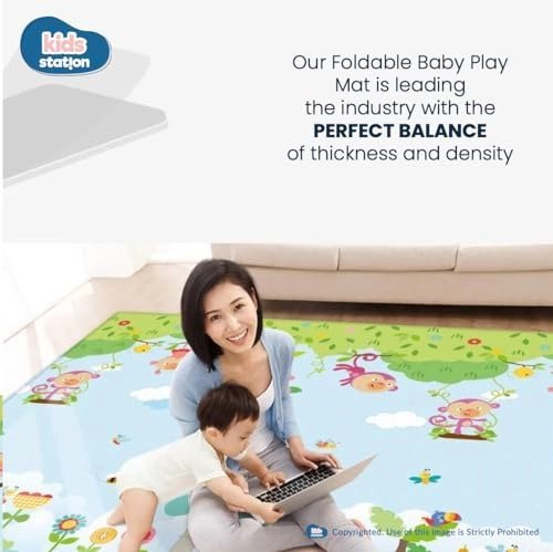 Kids Station Double-Sided Waterproof Baby Playmat – Foldable Portable & Reversible – Soft Foam for Kids Newborns Toddlers and Infants – Baby Carpet – Crawling Baby Play Mat (Indoor/Outdoor) – Non-Slip Crawl Floor Mat – 6.6ftx6ft or 200x180cm (Printed 1cm Thick) – Fast Shipping to USA & Canada
