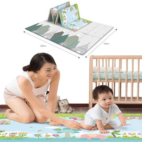 - 1) SPACIOUS & DOUBLE-SIDED: This generously sized, single-piece play mat provides ample space for your baby to crawl and safely reach developmental milestones by cushioning against bumps. Plus, with adorable designs on both sides, your little one will enjoy cheerful tummy time!