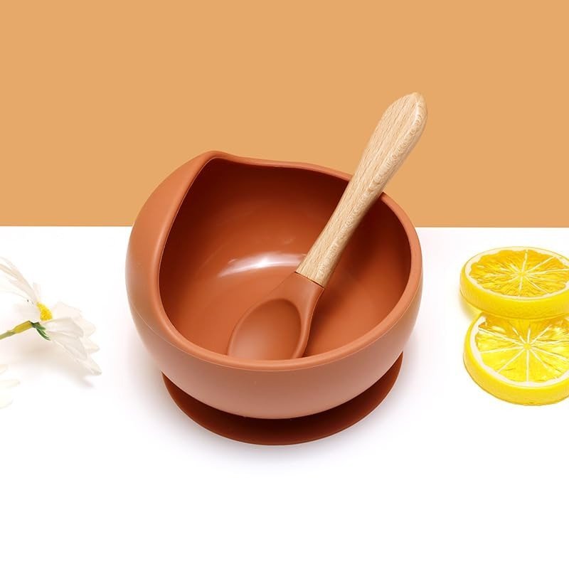 Kids Station Easy to Carry Silicone Baby Feeding Set – Bowl – Spoon – Make Mealtime Fun and Easy – Tableware Meal Utensils for Kids with Suction – Baby Feeding Product (Set of 2, Orange) – Fast Shipping to USA & Canada