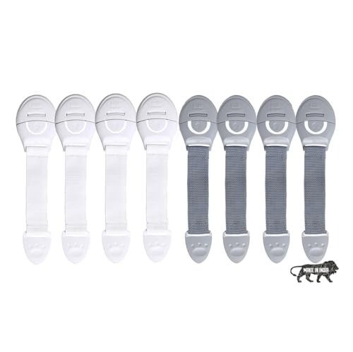Kids Station Furniture Safety Locks for Kids, Pack of 4 Grey + 4 White, Made in India Child Safety, Locks for Drawers, Cabinets, Fridge, Cupboard Lock, Strong and Adhesive Safety Locks – Fast Shipping to USA & Canada