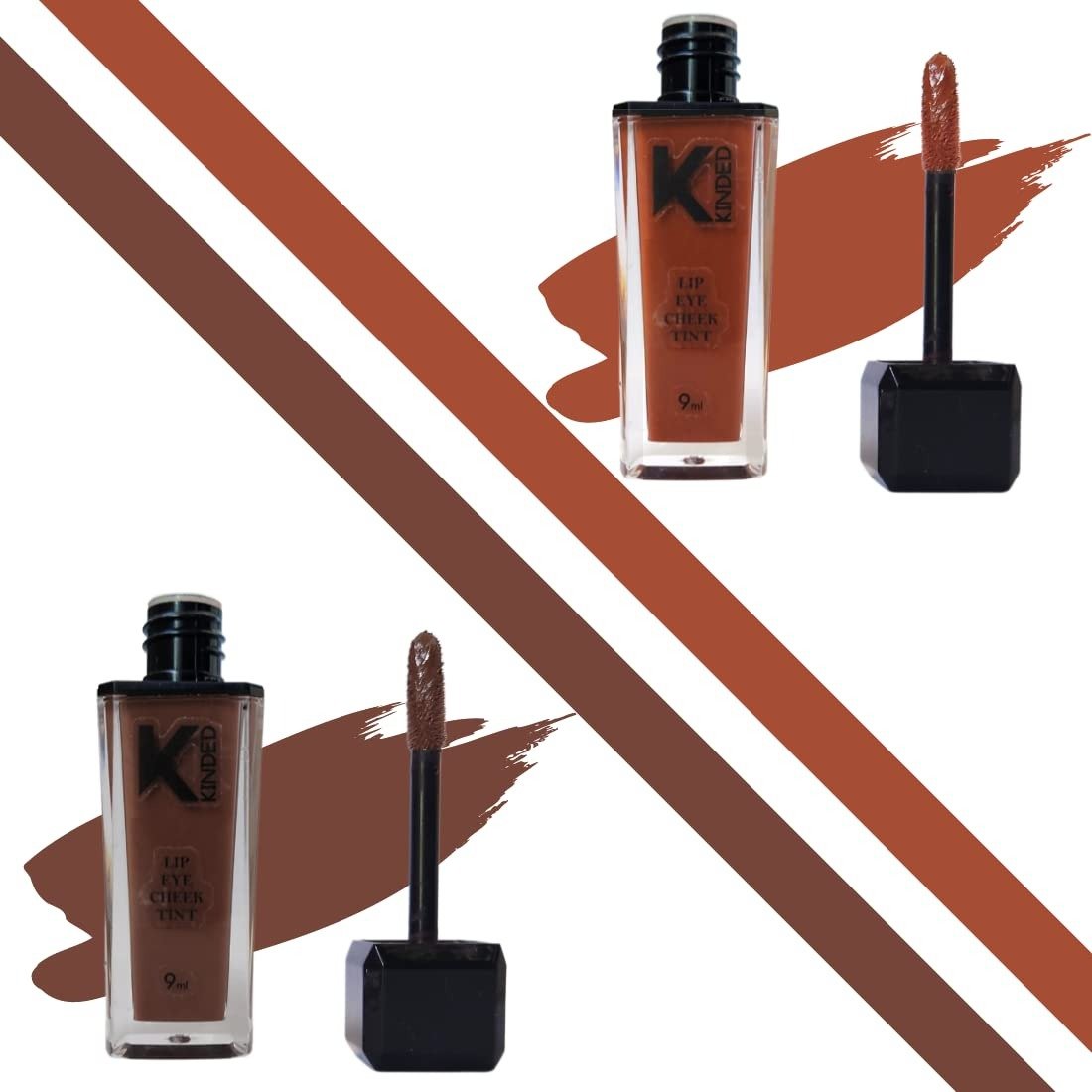 KINDED Lip Eye and Cheek Tint Combo for Women Girls Longlasting Moisturizing Vitamin E Liquid Lip Colour Lipstick Eyeshadow Blush (Matte Finish, Brown Temptation & Choco Brown, 9 ml each) – Fast Shipping to USA & Canada