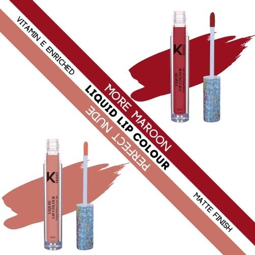 KINDED Liquid Lip Colour Vitamin E Enriched No Transfer Waterproof Long Stay Lipsticks Lip Gloss Set for Girls Women (Pack of 2, 6 ml each, Matte Finish, Shades More Maroon & Perfect Nude) – Fast Shipping to USA & Canada