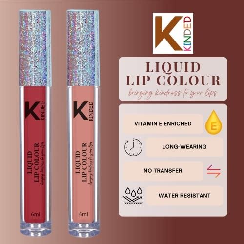 KINDED Liquid Lip Colour features a formula that is both non-transfer and smudge-proof, delivering a vibrant color payoff with just one application, all while infusing your lips with Vitamin E. This natural ingredient offers numerous advantages, including hydration, softness, anti-inflammatory properties, antioxidant protection, and overall defense for your lips. The lip colors are richly pigmented and glide on smoothly, providing a liquid matte finish. Our Lip Colours are free from harmful synthetic chemicals, ensuring that they retain their consistency, vibrancy, and effectiveness. Indulge your lips with captivating shades, intense pigmentation, buildable coverage, and long-lasting wear. Additionally, it hydrates your lips while ensuring that the color remains intact for an extended period. With Balancing Pigments, it not only keeps your lips moisturized but also delivers a durable finish that resists fading. Discover our collection of makeup products and brushes from KINDED available on Amazon.
