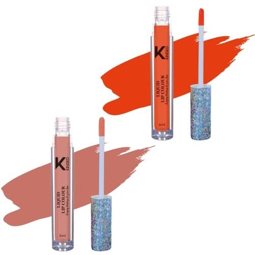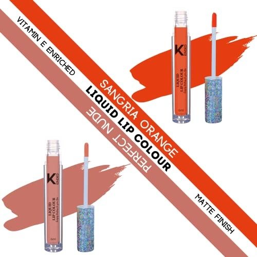 KINDED Liquid Lip Colour Vitamin E Enriched No Transfer Waterproof Long Stay Lipsticks Lip Gloss Set for Girls Women (Pack of 2, 6 ml each, Matte Finish, Shades Sangria Orange & Perfect Nude) – Fast Shipping to USA & Canada