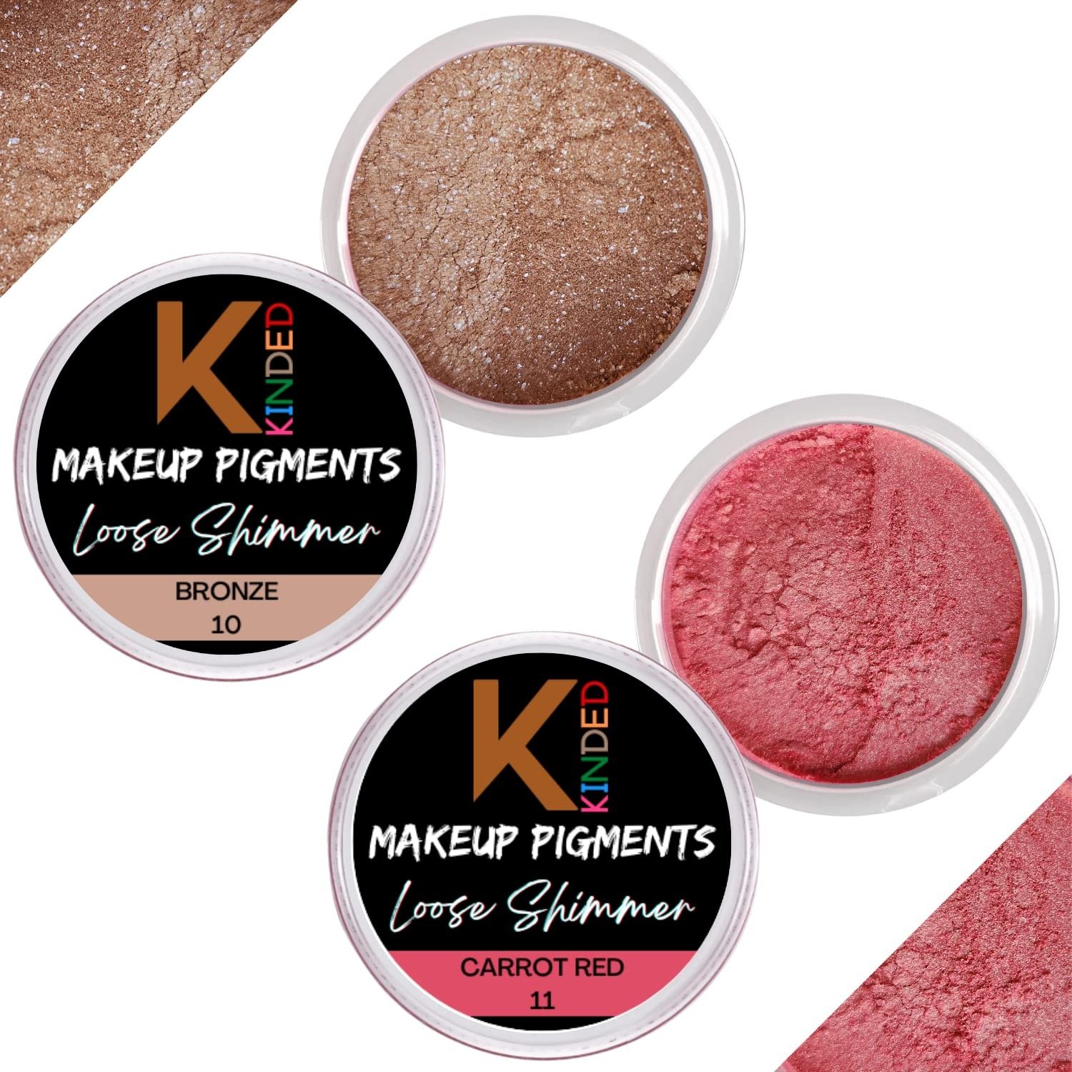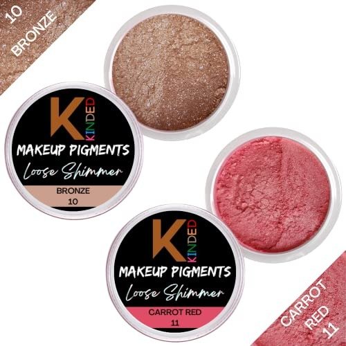 10 reviews for KINDED Loose Shimmer Makeup Foil Pigments Glitter Eyeshadow for Women Smokey Eyes Face Brow Bones Body Highlighter Metallic Beauty Shiny Dust Powder Pearls (Combo 3gm each, Bronze & Carrot Red) – Fast Shipping to USA & Canada