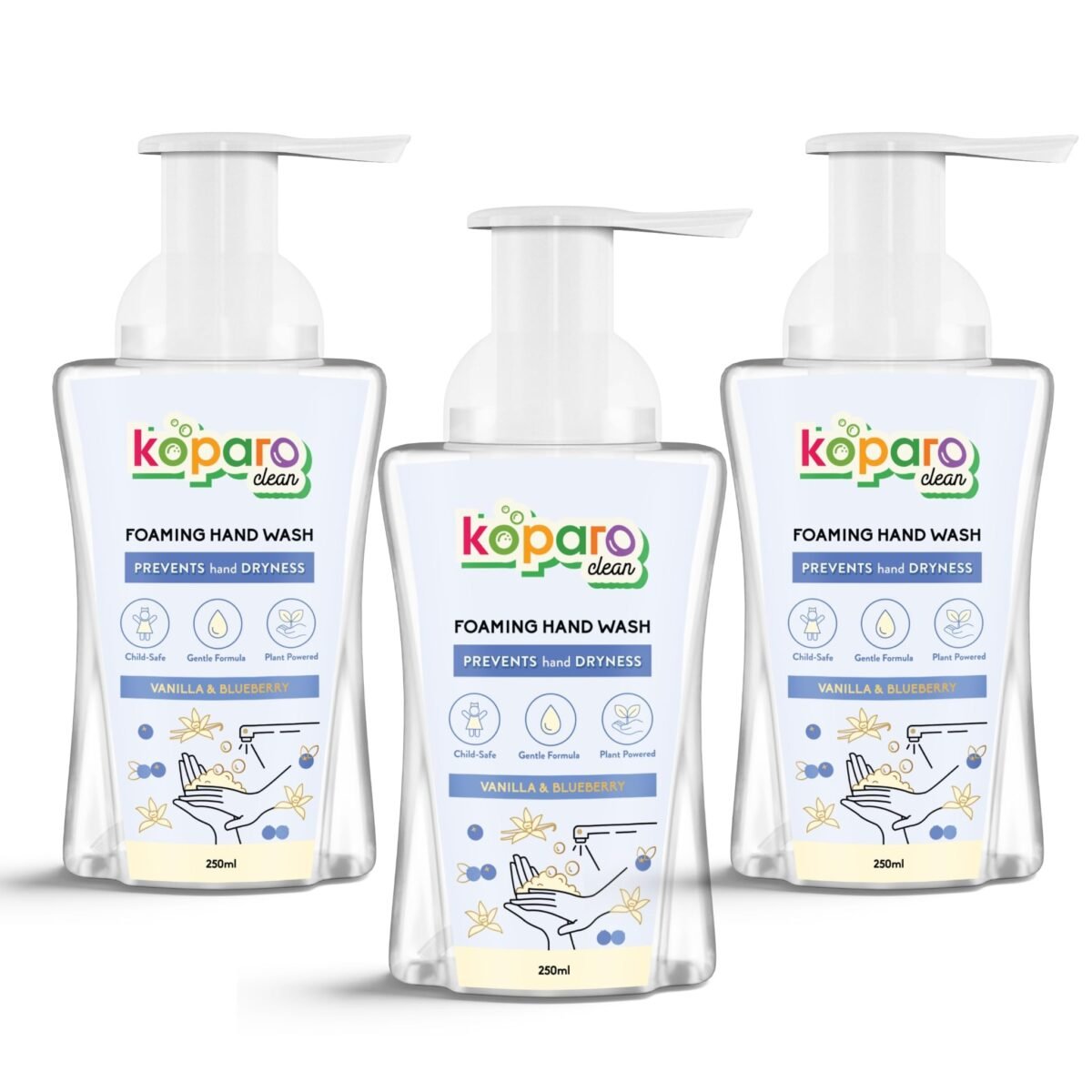 Koparo Natural Foaming Hand Wash | 250ml – Pack of 3 | Vanilla & Blueberry Fragrance | pH Balanced Infused With Glycerin | Safe for All Skin Types | Plant Based | Safe for Kids – Fast Shipping to USA & Canada