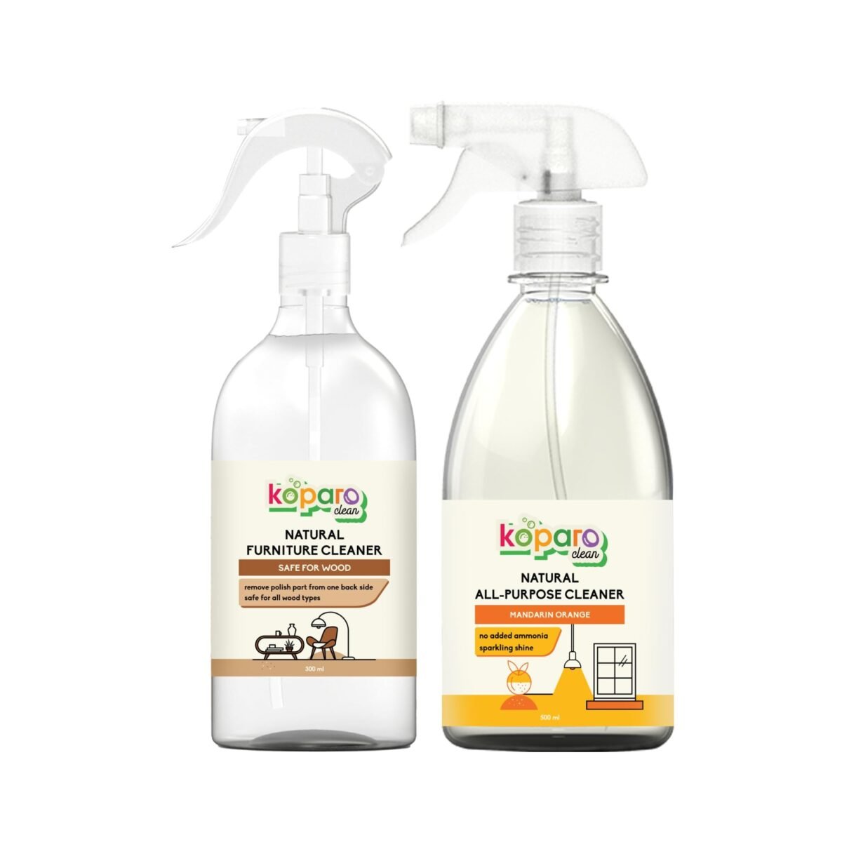 Koparo Natural Furniture Cleaner – 300ml and All Purpose Cleaner – 500ml | Mandarin Orange Fragrance | Combo Pack of 2 – Fast Shipping to USA & Canada