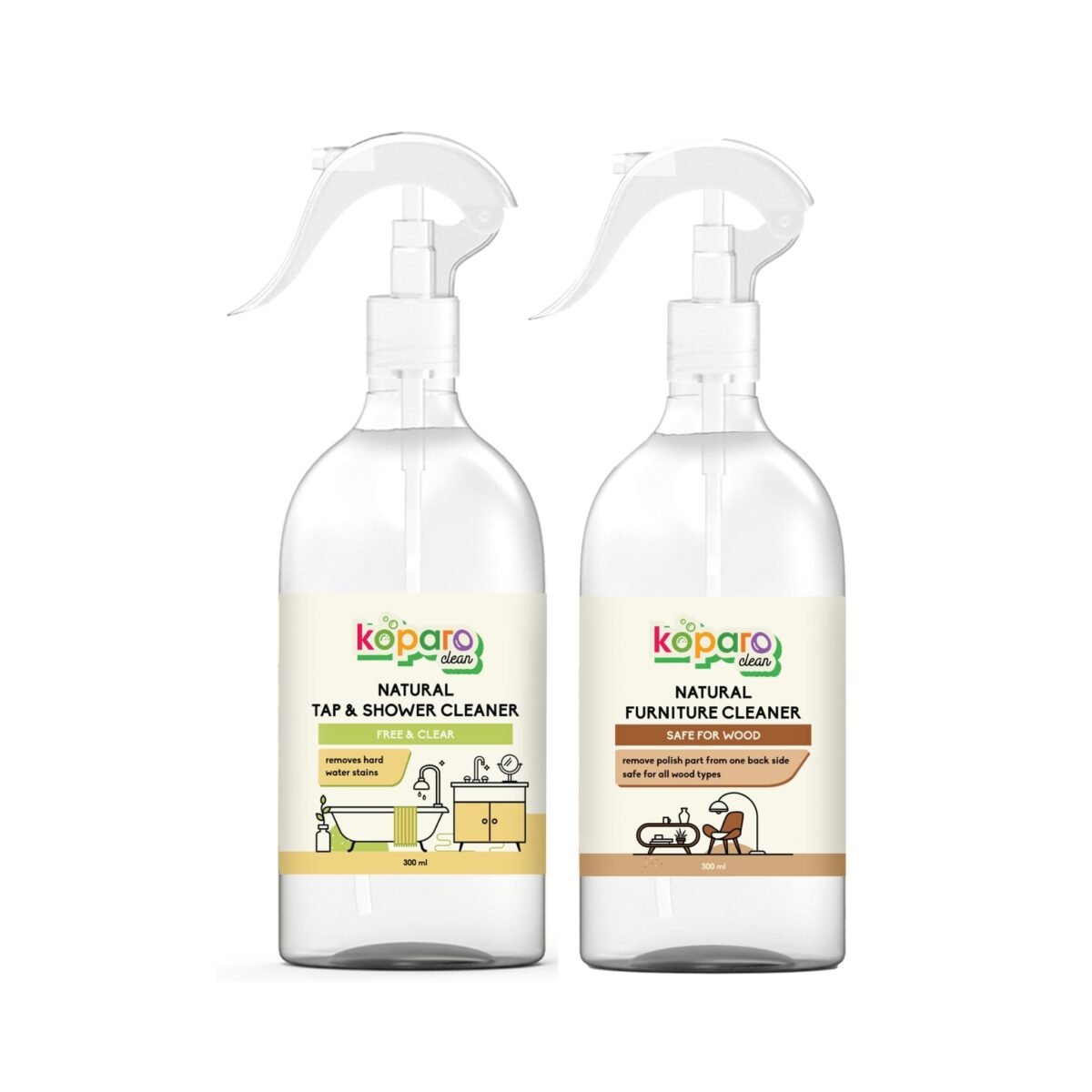 Koparo Natural Furniture Cleaner and Tap and Shower Cleaner | 300 ml Each – Fast Shipping to USA & Canada