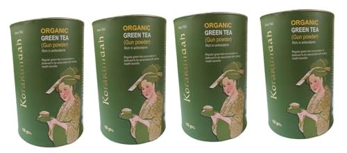 KORAKUNDAH Organic Green Tea in Canister (Gun Powder) 100 g | Pack of 4 | Total 400 g | Rich in Antioxidants | Chamraj Finest Nilgiri Tea – Fast Shipping to USA & Canada
