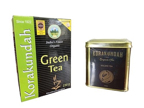 KORAKUNDAH Organic Green Tea (Jasmine) 250 g | KORAKUNDAH Oolong Organic Tea 100 g | Pack of 2 | Total 350g | India’s Finest Chamraj Nilgiri Tea – Fast Shipping to USA & Canada