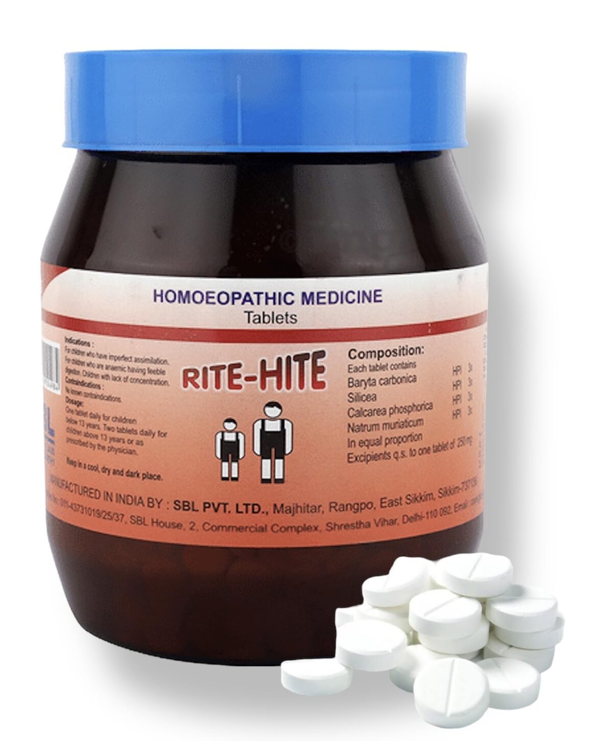 SBL Rite Hite Tablets 450g, Rite Hite homeopathic tablets, SBL homeopathic remedy, Rite Hite SBL, Rite Hite 450g, Rite Hite medication, SBL tablets for individuals aged 25, Rite Hite SBL medicine, SBL Rite Hite tablets pack of 4 for age 25.