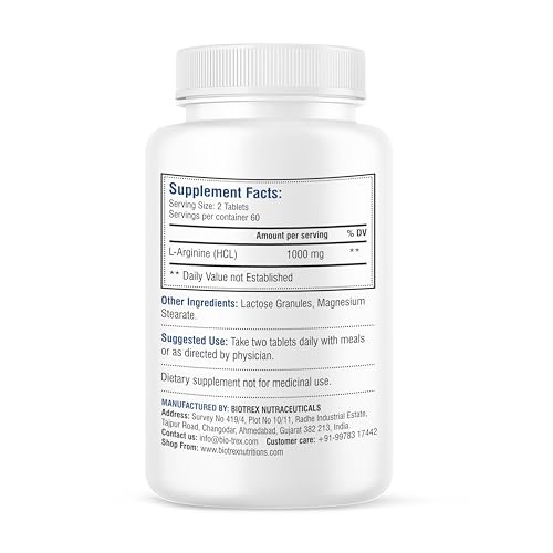 - Enhances the Efficacy of Other Bodybuilding Supplements: Biotrex Nutraceuticals L-Arginine 1000mg Tablets improve the effectiveness of additional bodybuilding supplements, allowing you to fully capitalize on your nutritional intake and extend your workout sessions.