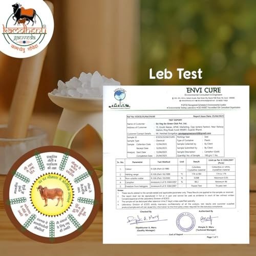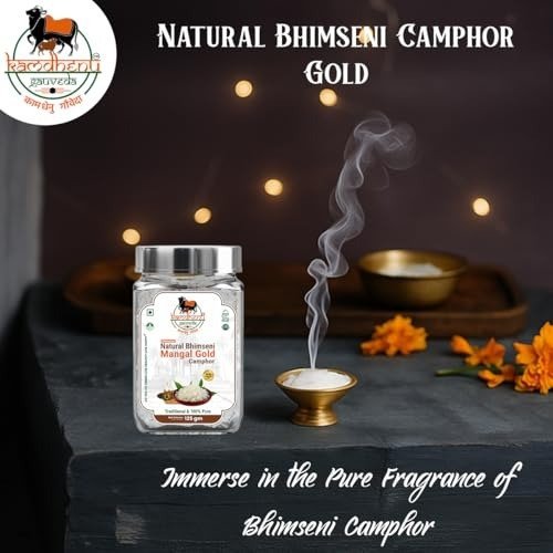 - KAMDHENU GAUVEDA Premium Lab-Tested Feng Shui-Activated Natural Bhimseni Camphor, 100% Pure Organic Solid Kapoor for Electric Diffusers, Puja, Havan, Aarti, Aromatherapy, Meditation, Room Freshening, and Mosquito & Insect Repellent