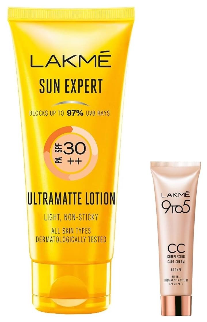 LAKME Sun Expert Spf 30 Pa++ Ultra Matte Lotion Sunscreen, 50 Ml & 9 To 5 Complexion Care Face Cc Cream, Bronze, Spf 30, Conceals Dark Spots & Blemishes, 9G – All Skin Type – Fast Shipping to USA & Canada